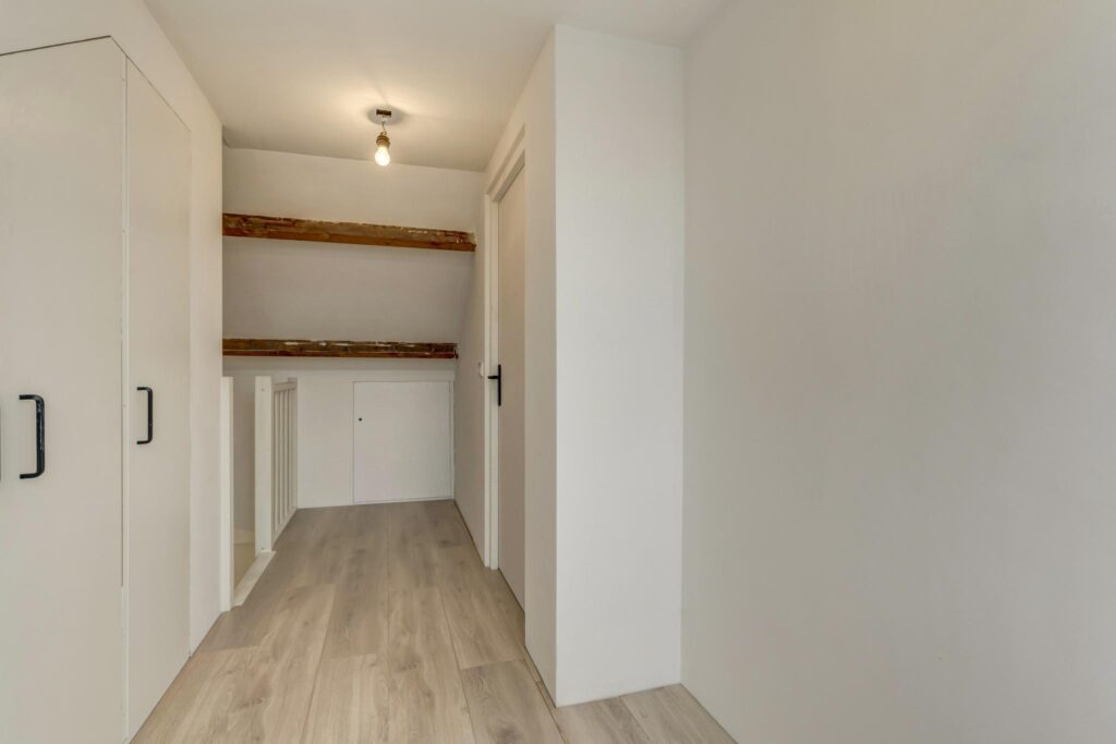 Dankzij de dakkapellen (zeer recent gerealiseerd) is de tweede verdieping een stuk groter en lichter geworden. Als eerste kom je op de overloop, waar vaste kasten zijn gemaakt. In een van deze kasten hangt de HR-ketel, die zorgt voor verwarming en warm water.