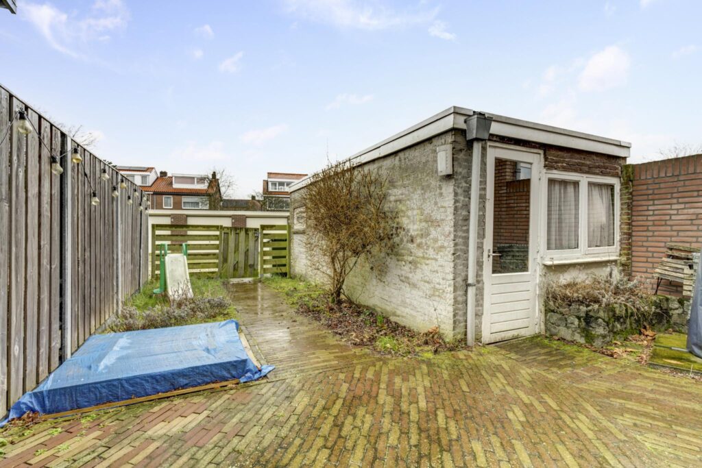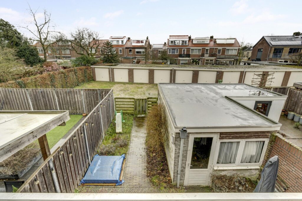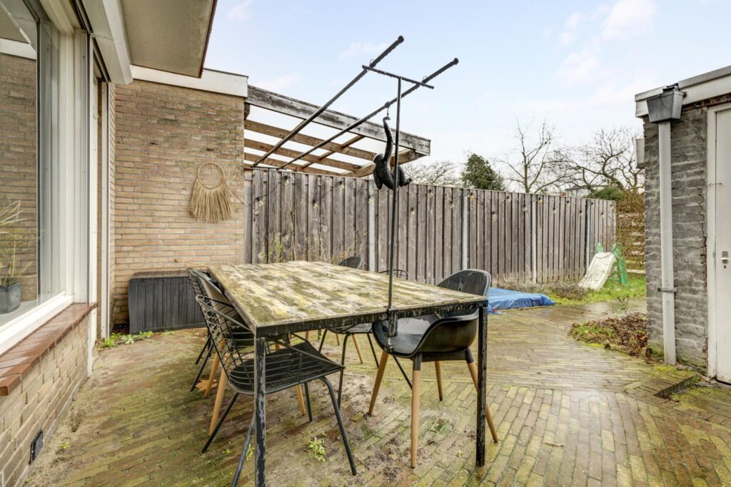 Deze woning heeft een leuk aangelegde voortuin op het westen en een achtertuin op het oosten. In de achtertuin is de stenen (verouderde) garage/hobbyruimte voor de auto, fietsen, motor of een andere invulling.