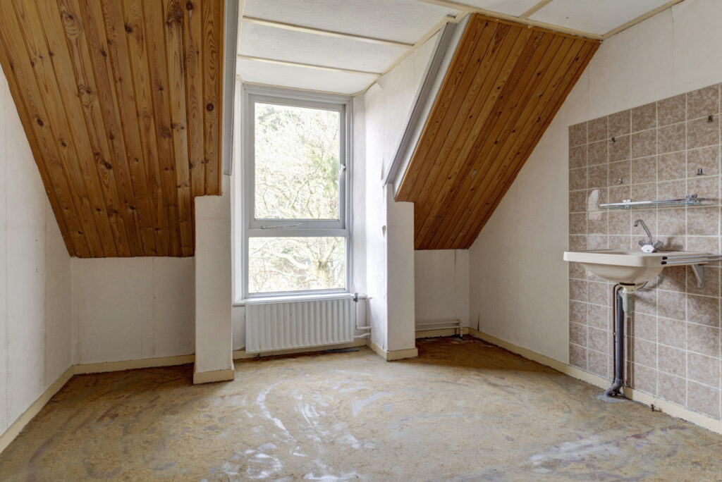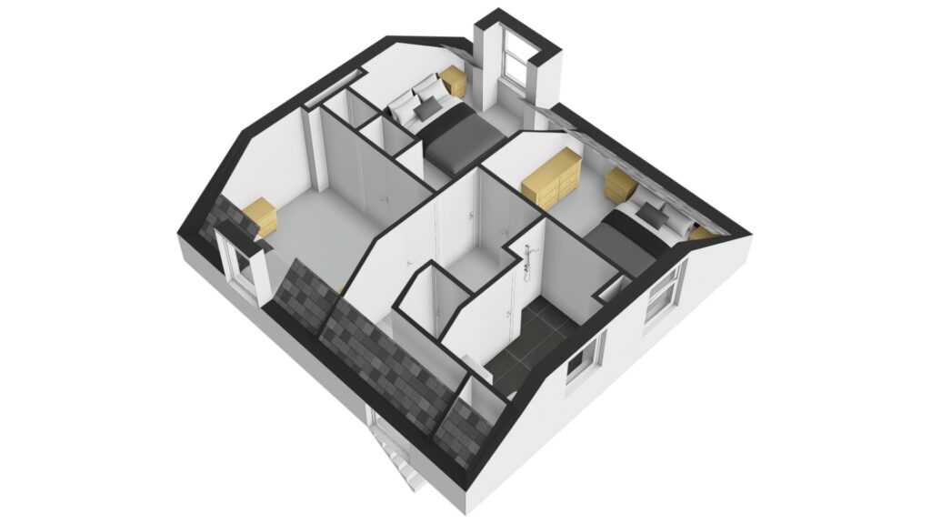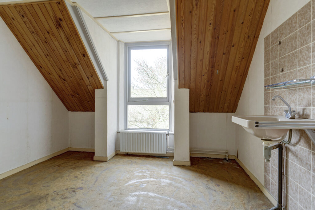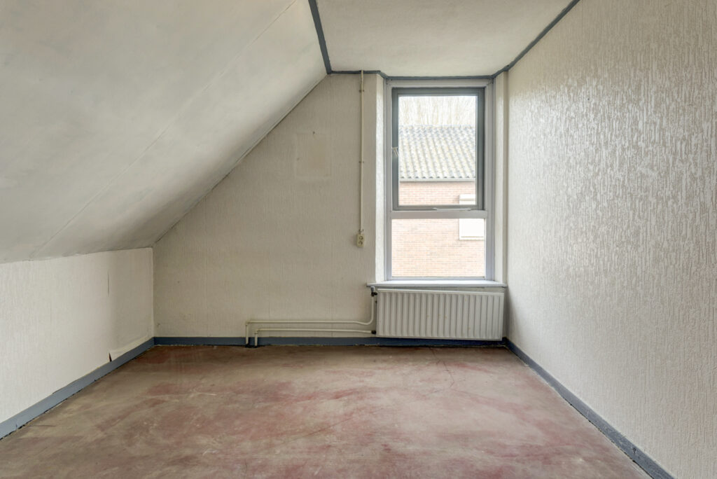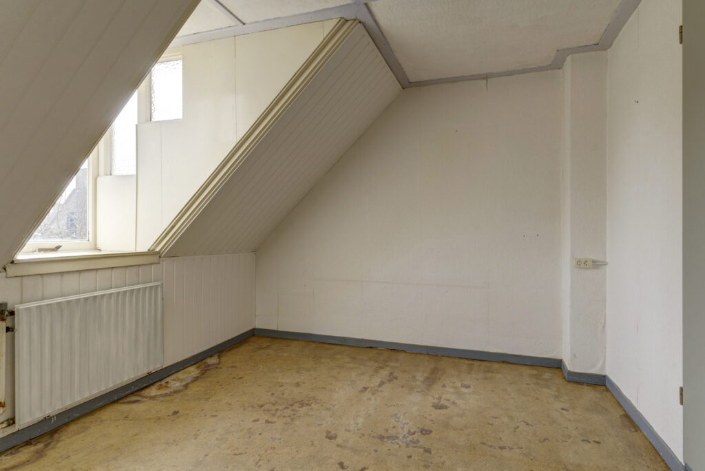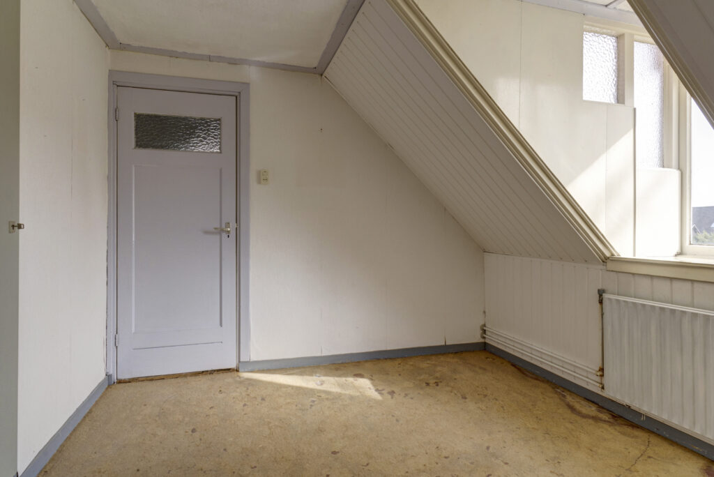 De overloop geeft toegang tot de cv-ruimte, drie slaapkamers en de badkamer. Zowel een dakkapel aan de voorzijde als een dakkapel aan de achterzijde, wat zorgt voor extra ruimte en licht. De badkamer is eenvoudig uitgevoerd en beschikt over een douche en wastafel.