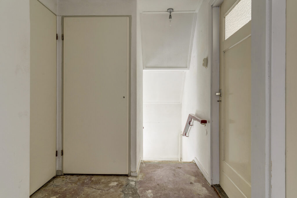 Via de entree kom je in de hal met toilet en trapopgang naar de eerste verdieping. De Z-vormige woonkamer zorgt voor een speelse indeling met voldoende ruimte voor zowel een zit- als eetgedeelte. Daarnaast is er een handige kelder aanwezig voor extra bergruimte.