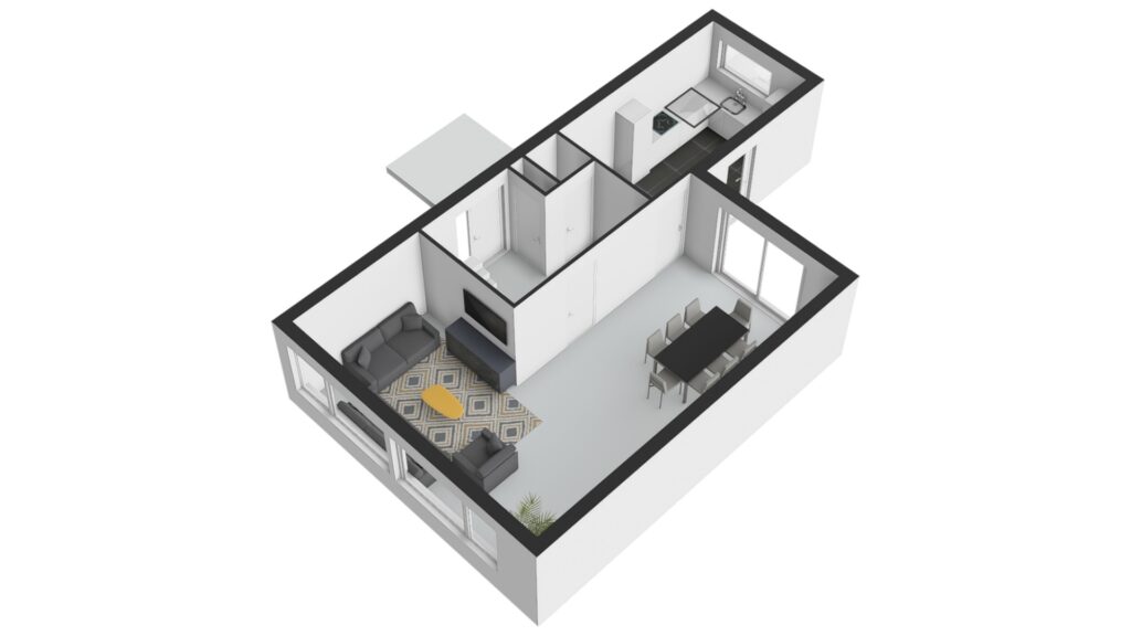 – Lichte, L-vormige woonkamer met schuifpui en een verrassend ruime keuken;