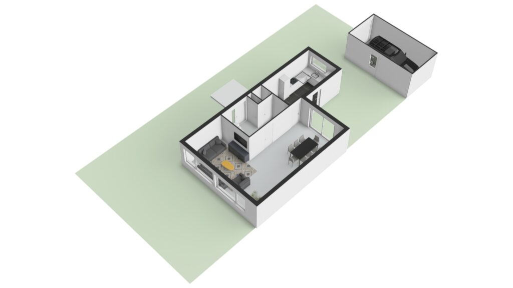 – Garage vrijstaand in spouw opgetrokken, sectionale garagedeur, oprit voor 2 auto’s, altijd parkeren op eigen terrein;