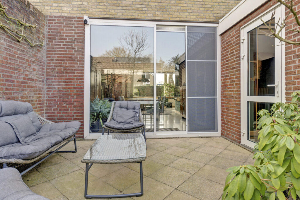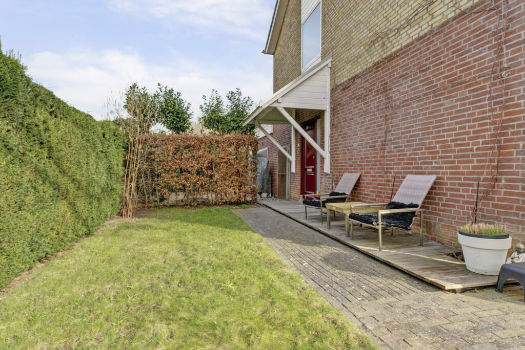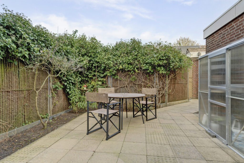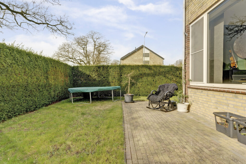 De zijtuin is gesitueerd op het westen en de voortuin op het zuiden. Een hoge, groenblijvende haag zorgt voor privacy bij het zonneterras en ook hier is veel groen te zien. Komt er een gezin in dit fijne huis wonen? Voor een trampoline is meer dan genoeg plek!