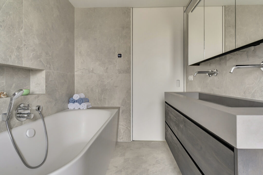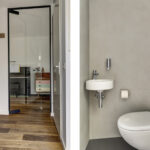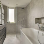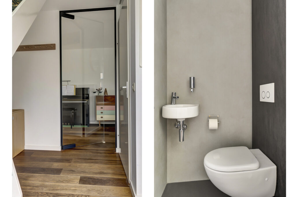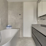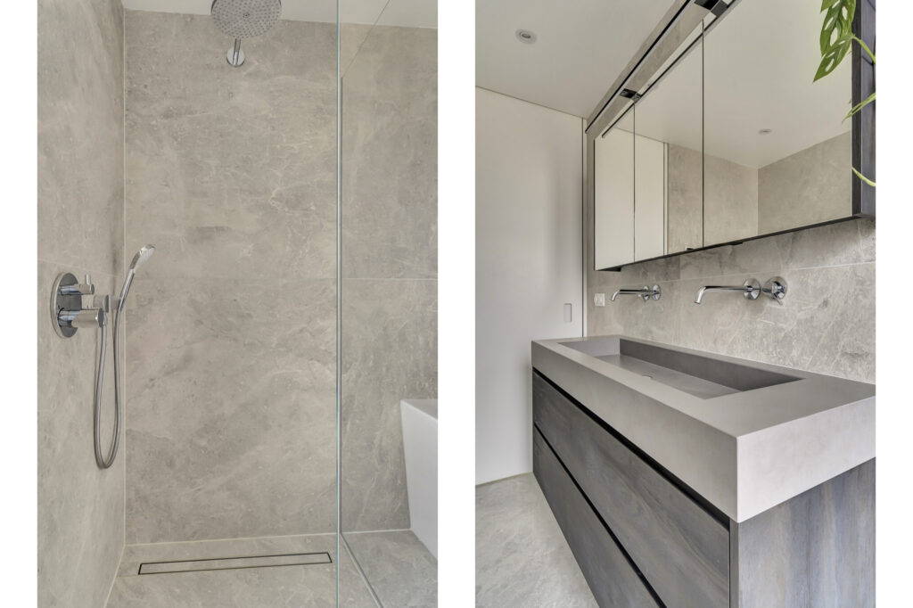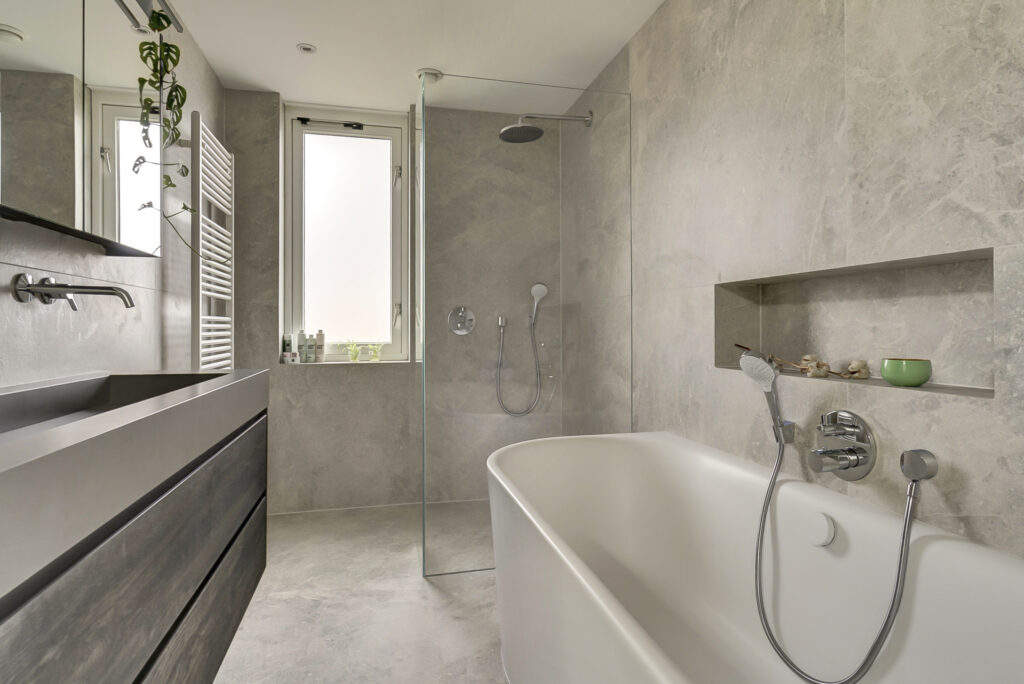 In 2024 is de badkamer vernieuwd, met een fantastisch resultaat. De wanden en vloer hebben een stoere betonlook, de glazen wand maakt de badkamer optisch groter en het sanitair is van topkwaliteit. Je hebt de beschikking over een ligbad, een inloopdouche, designradiator en een stijlvol wastafelmeubel met spiegelkast. Het separate toilet, met een zijraam, is uitgevoerd in dezelfde stijl.
