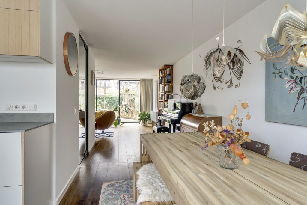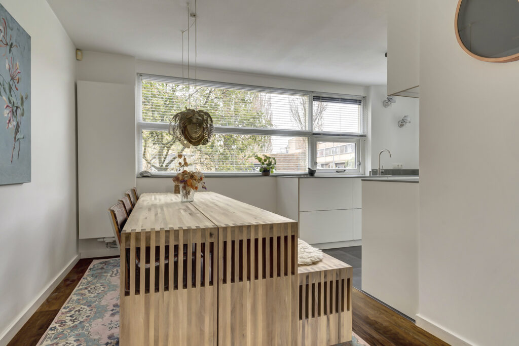 De keuken, het eetgedeelte en het tuingerichte zitgedeelte vormen samen een leefruimte van topkwaliteit. Vanuit de keuken kijk je naar de rustige straat en het eetgedeelte biedt genoeg ruimte om een grote tafel neer te zetten. Perfect voor een etentje met het gezin, vrienden of familie!
