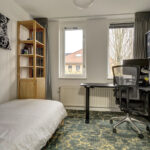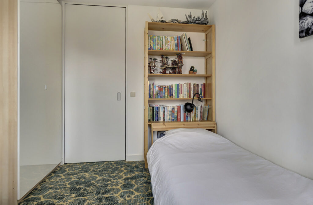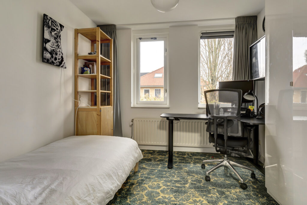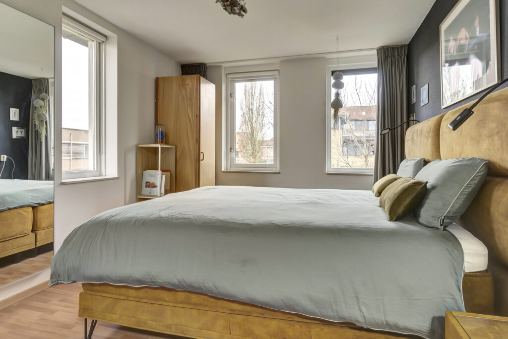 Op deze verdieping zijn drie slaapkamers, de badkamer en een aparte toiletruimte. Er zijn twee kamers aan de achterzijde, ingericht als master bedroom en werkkamer. De slaapkamer aan de voorzijde is, gezien de grootte, zeer geschikt als kinderkamer of tweepersoons (logeer)kamer.