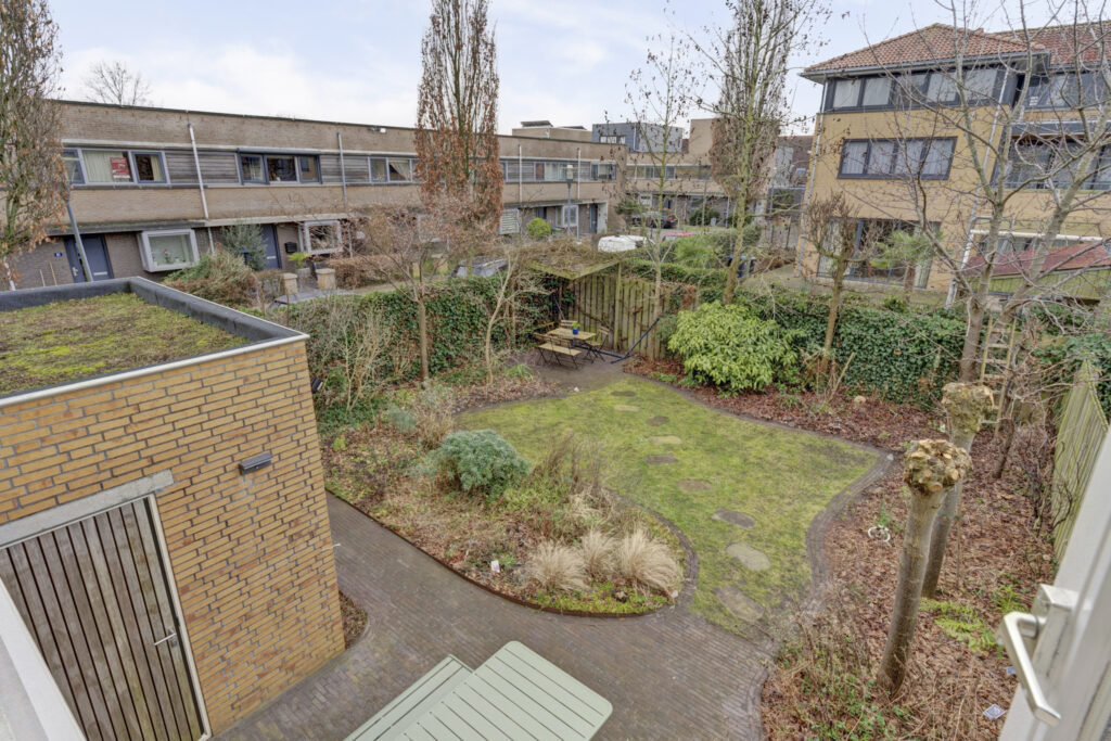 De aangebouwde garage, met een vernieuwd groendak, heeft een lengte van maar liefst 6.50 meter. Dubbele deuren aan de voorzijde zorgen ervoor dat je zo met de auto, motor of fiets naar binnen kan. Ook is er een deur naar de achtertuin, waardoor de garage ook een prima plek is voor het tuingereedschap.