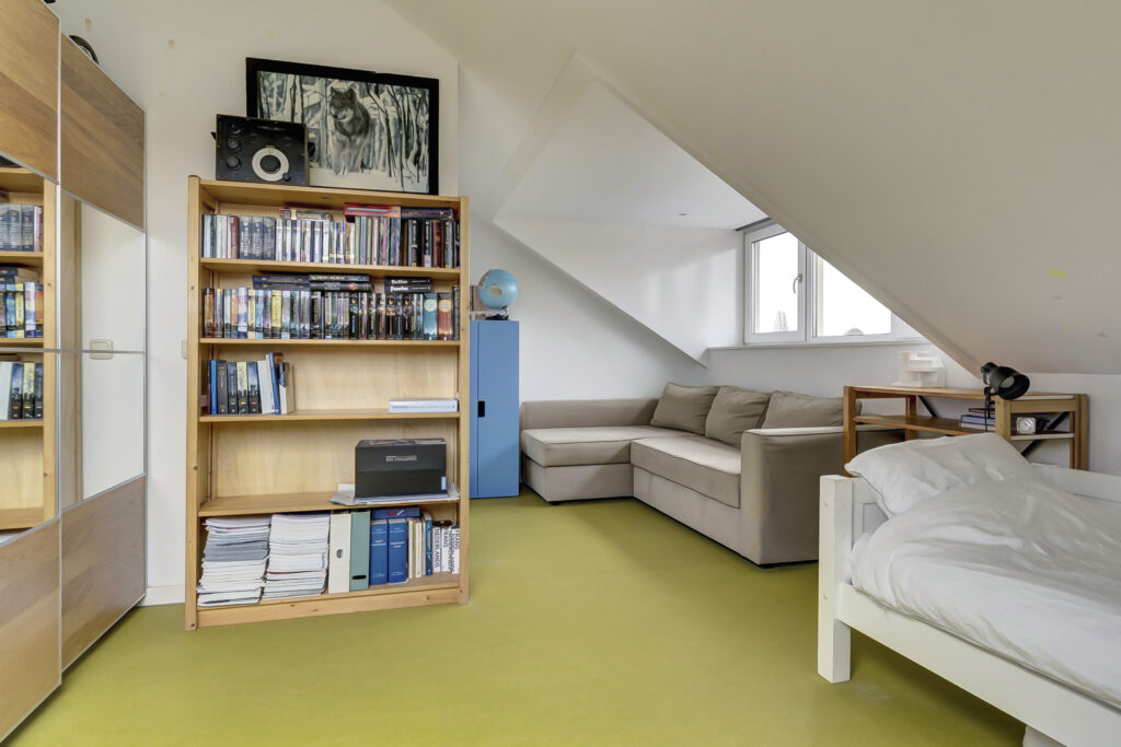 De overloop, met een groot dakraam, vervult tevens de functie van wasruimte en er staat een bureau. Aan ruimte geen gebrek! Dit geldt ook voor de aansluitende slaapkamer, met een dakkapel en een dakraam. Ruimte, licht en sfeer zijn ook hier volop aanwezig!